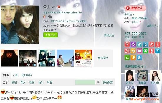 网友根据“朵太lynn”的微博,扒出了让人无比羡慕的“幸福生活”。1月16日,“朵太lynn”写道:“上海两会结束了,开完会的领导要下发任务和方针,今天老公一直在开会,去市政上班那么几个月,终于觉得他有那么点忙了……”另外,进口美食、浪漫出游,还有年底近万元的购物小票等,通通都是“朵太lynn”的微博内容。
